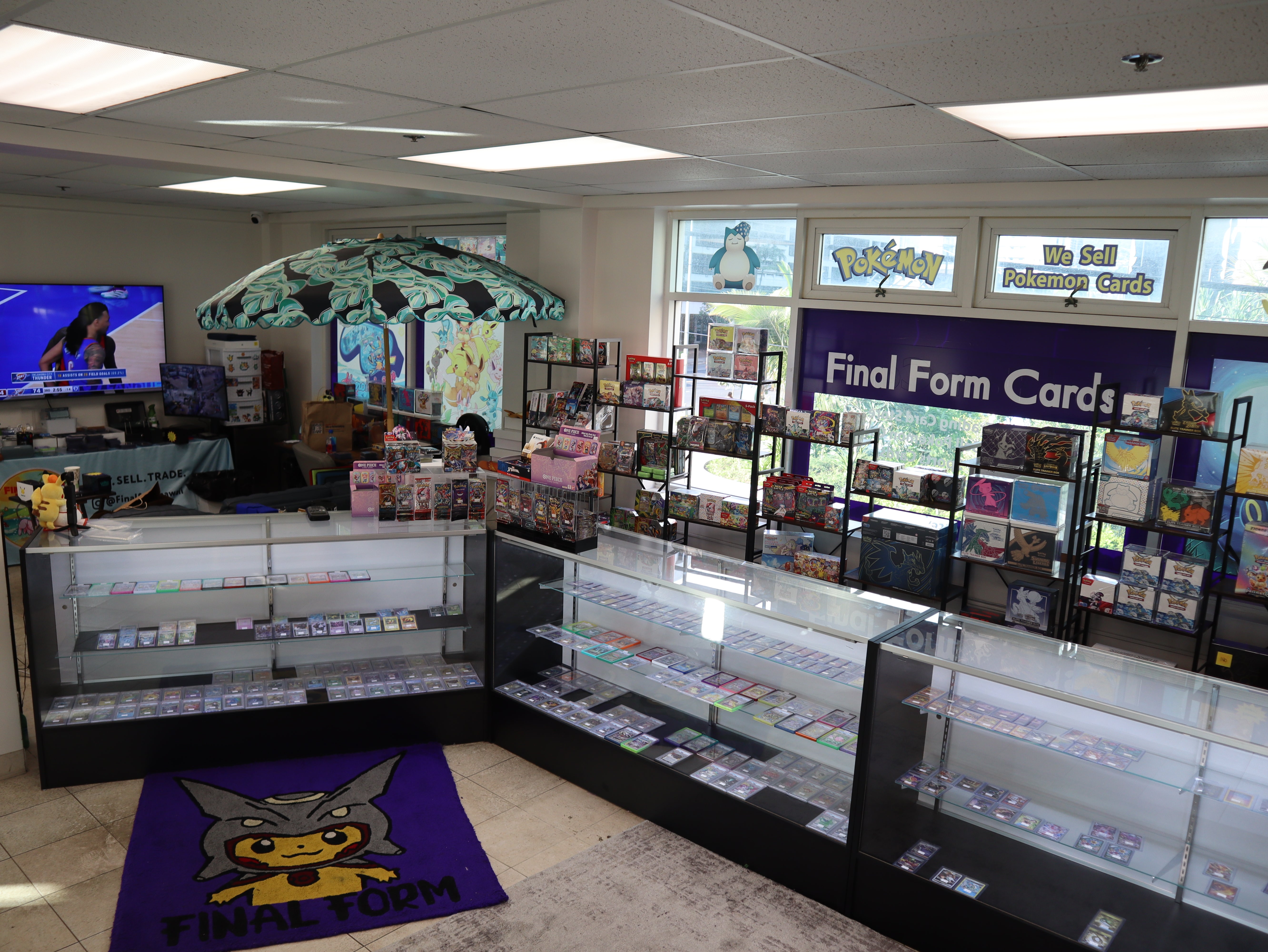 Additionally, we carry a selection of One Piece, Magic: The Gathering, Sports cards, and other TCG products. We post new arrivals to our Instagram, so make sure to give us a follow @finalformhawaii and stop by the store to see what's new!