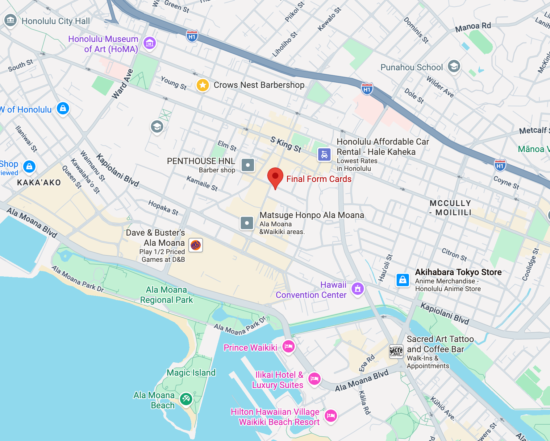 Final Form Cards & Collectibles is a local Honolulu card shop located in Honolulu, Hawaii. We've served the TCG community since 2020. We are centrally-located at 745 Keeaumoku St, Suite 202, Honolulu, Hawaii 96814.